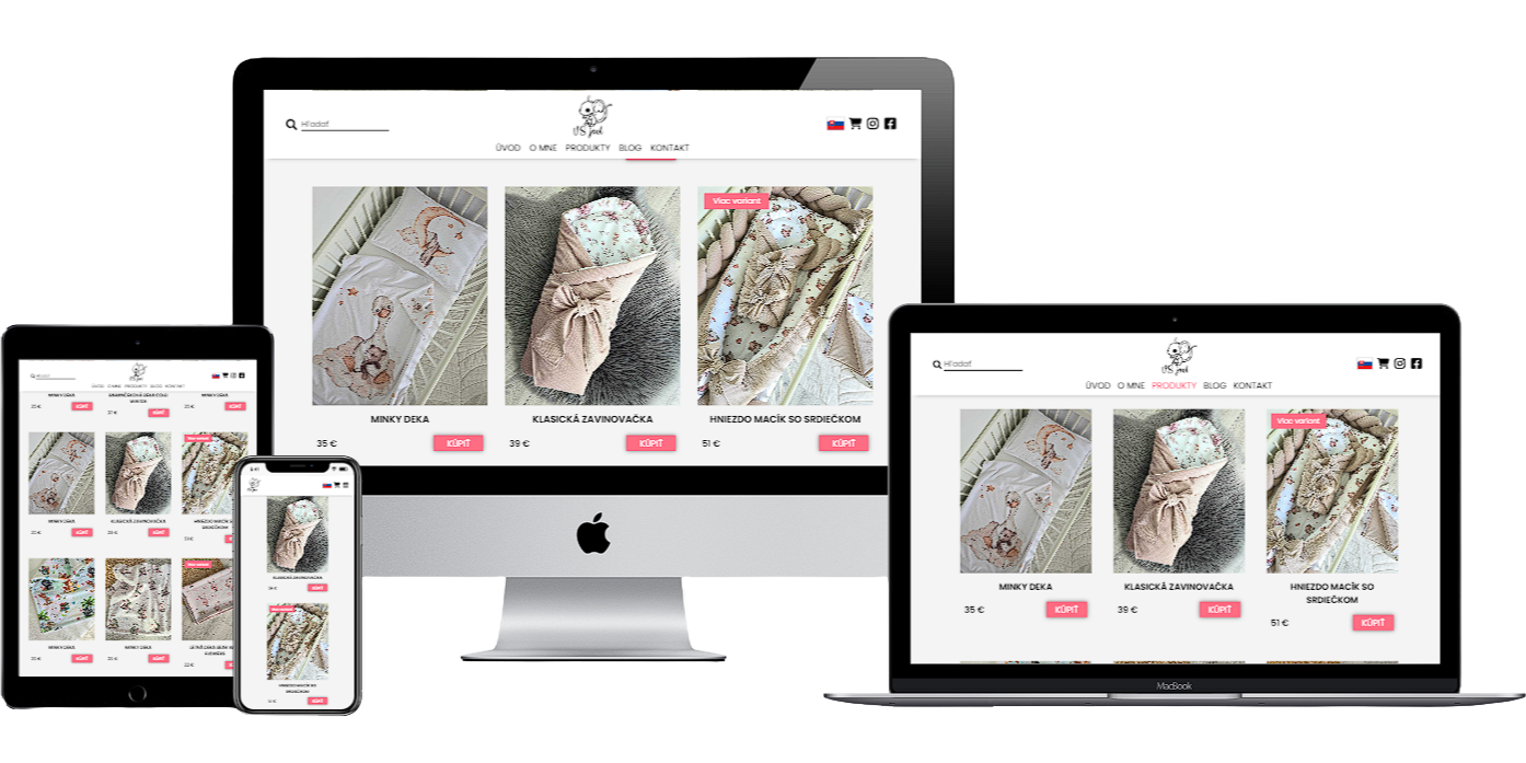 E-shop zaměřený na prodej handmade oblečení a doplňku pro miminka s autorskými vzory.